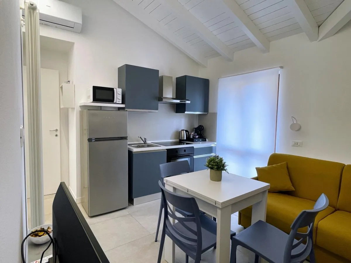 Appartamento compatto e funzionale, ideale per coppie o viaggiatori in transito. Dispone di soggiorno con divano letto, cucina attrezzata, bagno privato e balcone.
